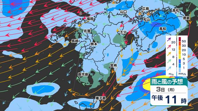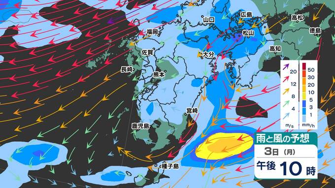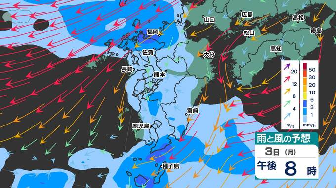 【春の嵐3日(月)4日(火)】熊本県・佐賀県・宮崎県 高校受験生は時間に余裕を! 【福岡・佐賀・長崎・大分・熊本・宮崎・鹿児島】雨と風のシミュレーション3日(月)4日(火) 2025年3月3日(月) 20:00 国内 天気 雨と風のシミュレーション3月3日(月)~4日(火) 3日(月)対馬海峡など北部沿岸部では、暴風波浪警報が発表中です。 4日(火)午前は九州南部で、午後は九州北部で活発な雨雲が予想されています。 画像で確認できます。