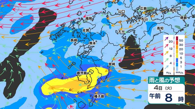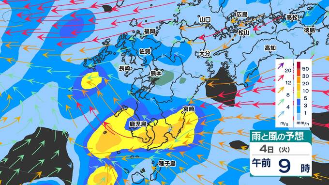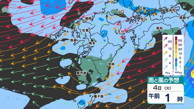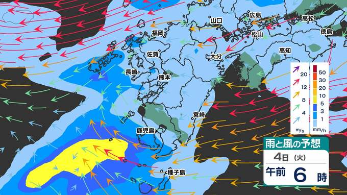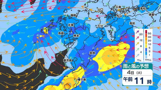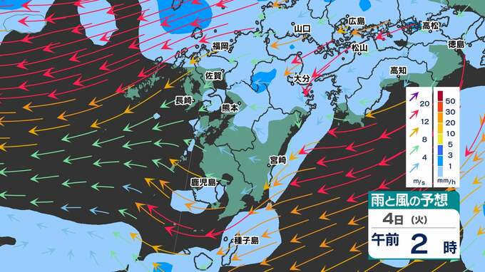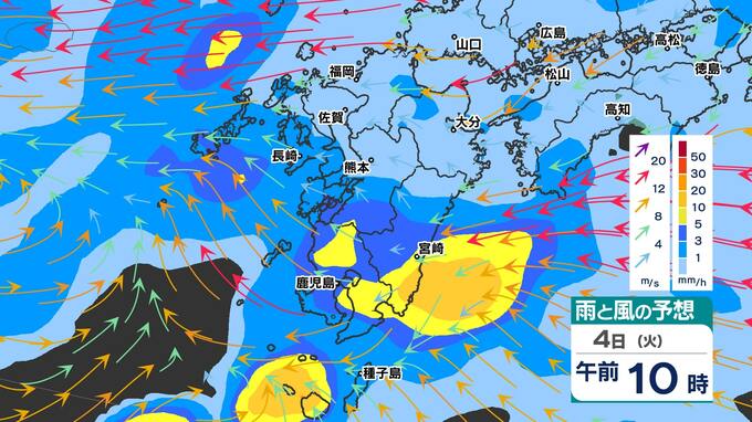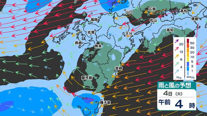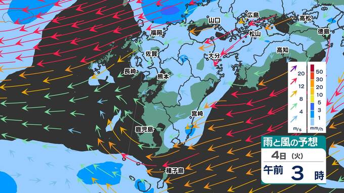 3. 【春の嵐3日(月)4日(火)】熊本県・佐賀県・宮崎県 高校受験生は時間に余裕を! 【福岡・佐賀・長崎・大分・熊本・宮崎・鹿児島】雨と風のシミュレーション3日(月)4日(火)