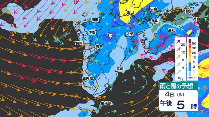 【春の嵐3日(月)4日(火)】熊本県・佐賀県・宮崎県 高校受験生は時間に余裕を! 【福岡・佐賀・長崎・大分・熊本・宮崎・鹿児島】雨と風のシミュレーション3日(月)4日(火) 2025年3月3日(月) 20:00 国内 天気