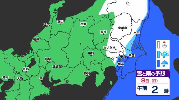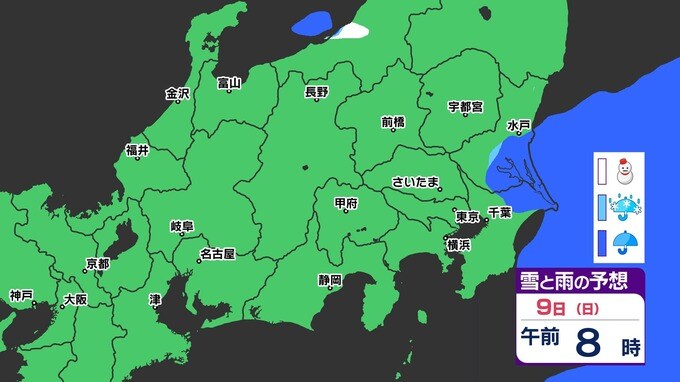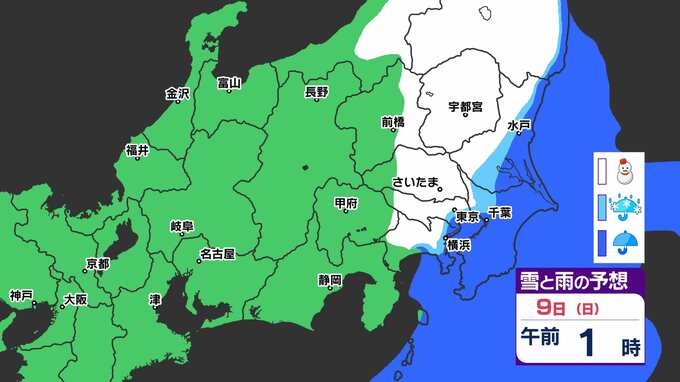 【大雪情報】東京・神奈川・埼玉・千葉・群馬・栃木・茨城・山梨 気象台発表を詳しく【雪のシミュレーション8日(土)~9日(日)】 2025年3月7日(金) 21:00 国内 天気 『白』=『雪』/『水色』=『みぞれ(雨と雪が混ざったもの)』/『青』=『雨』の予想