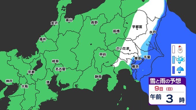 【東京 横浜 首都圏 土日 雪か?】週末に雪なんて降らなくても しかし 今シーズン最後の雪になるかも? 【雪のシミュレーション8日(土)~9日(日)】 2025年3月7日(金) 10:30 国内 天気 『白』=『雪』/『水色』=『みぞれ(雨と雪が混ざったもの)』/『青』=『雨』の予想
