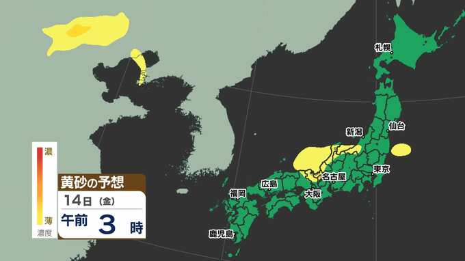 【黄砂接近中】 中国大陸の黄砂 気象衛星に写る 日本への飛来はいつ? 洗たく・洗車など注意 黄砂のシミュレーション12日(水)~14日(金)