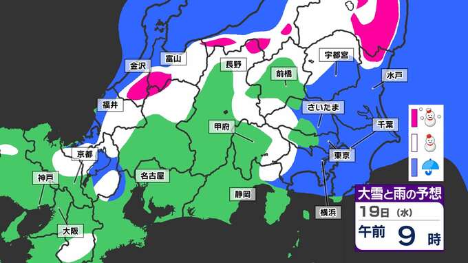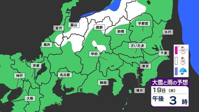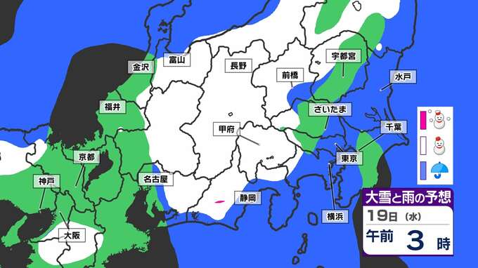 【土日雪か?東京・横浜・さいたま 】気温急降下「15日(土)から寒の戻り」週明けも雪が残りそう 来週は春のお彼岸なのに【雪シミュレーション15日(土)~19日(水)】 2025年3月14日(金) 20:30 国内 天気 「赤」は「大雪」、「白」は「雪」、「青」は雨の予想
