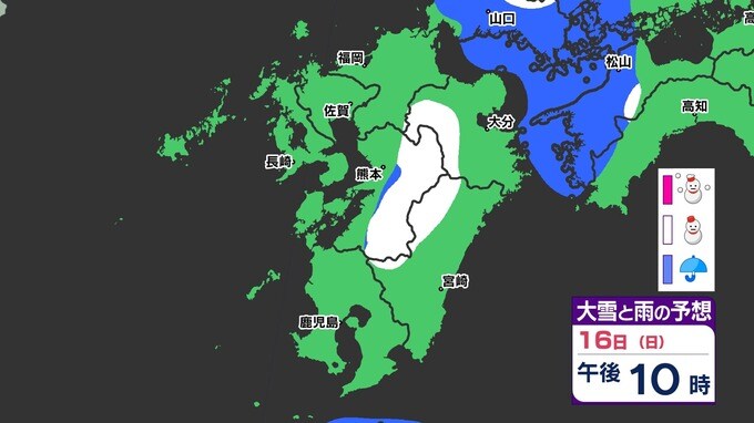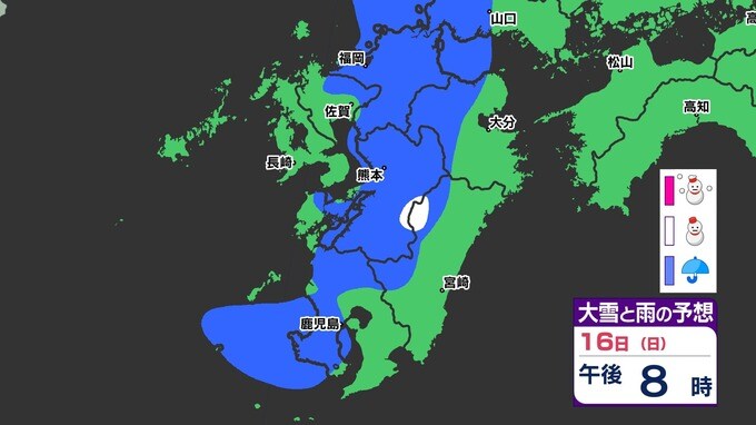 【今夜 雪が降る?】落雷・突風・ひょうにも注意 大気の状態が非常に不安定【雪のシミュレーション16日(日)~19日(水)】福岡・佐賀・佐賀・長崎・大分・熊本・宮崎・鹿児島 2025年3月16日(日) 19:30 国内 天気 雪のシミュレーション16日(日)~19日(水) 今週前半は〈寒の戻り〉で寒くなり、山間部を中心に雪が降る所が出でくる見込みです。画像では大雪が予想されるところも出てきます。 「赤」は「大雪」、「白」は「雪」、「青」は雨の予想