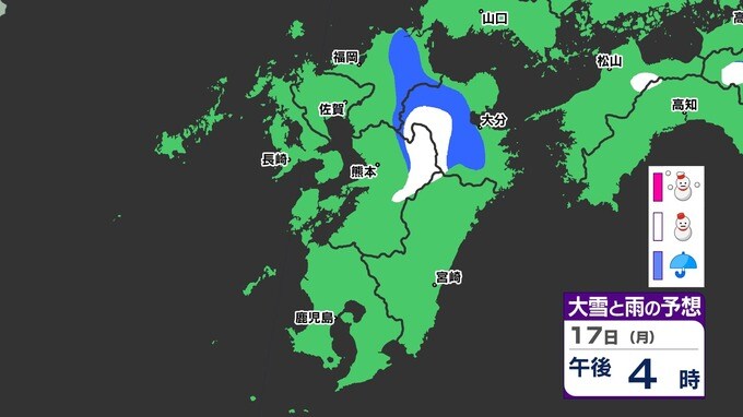 【今夜 雪が降る?】落雷・突風・ひょうにも注意 大気の状態が非常に不安定【雪のシミュレーション16日(日)~19日(水)】福岡・佐賀・佐賀・長崎・大分・熊本・宮崎・鹿児島 2025年3月16日(日) 19:30 国内 天気 「赤」は「大雪」、「白」は「雪」、「青」は雨の予想