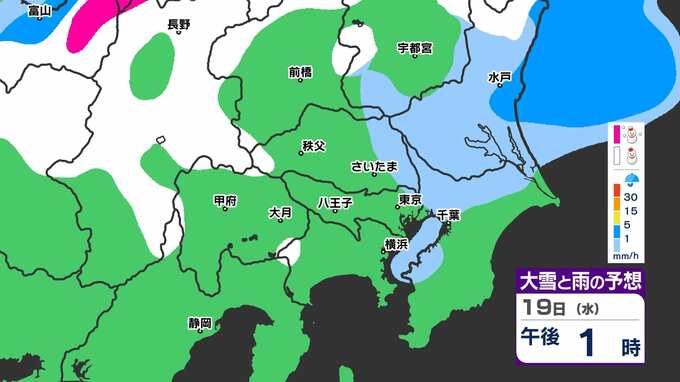 【東京 横浜 さいたま 首都圏雪か?】きょう「彼岸の入り」なのに あす「寒の戻り」【雪はいつ どこで降る?】雪のシミュレーション17日(月)~19日(水) 2025年3月17日(月) 10:00 国内 天気 「赤」は「大雪」、「白」は「雪」、「青」「黄」は雨の予想