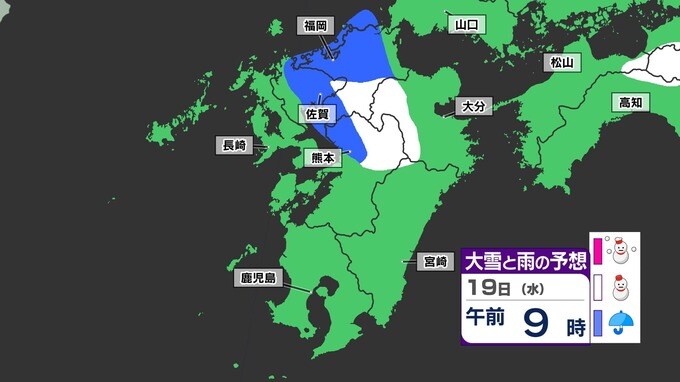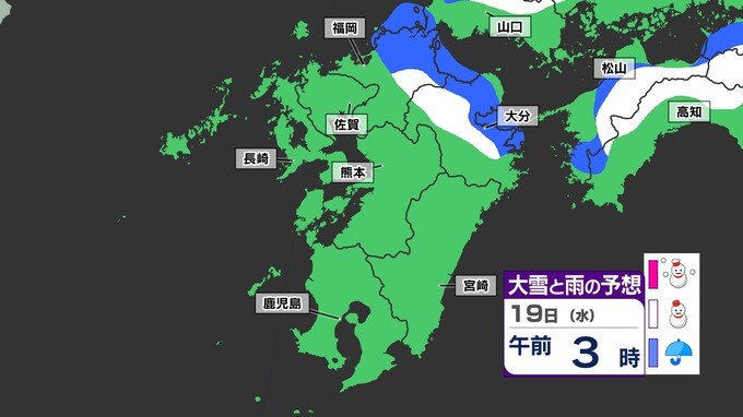 【大雪情報】福岡 山地10cm 平地1cm 春のお彼岸なのに雪が降るのか?【雪はいつ どこで?】 雪と寒気のシミュレーション18日(火)~19日(水) 福岡・佐賀・長崎・大分・熊本・宮崎・鹿児島 2025年3月17日(月) 16:00 国内 天気 「赤」は「大雪」、「白」は「雪」、「青」は雨の予想