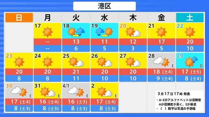 【早期天候情報】「大雪のおそれ」なのに「来週はかなりの高温」全国16日間予報【東京・大阪・名古屋・札幌・釧路・青森・仙台・新潟・広島・高知・福岡・鹿児島・那覇】 2025年3月17日(月) 20:03 国内 天気 16日間予報(4月2日までの天気予報) 札幌市・仙台市・東京・名古屋市・新潟市・大阪市・広島市・高知市・福岡市・鹿児島市・那覇市 の16日間予報です。画像で確認できます。 『早期天候情報』が発表されている地域は、併せてごらんください。画像で確認できます。