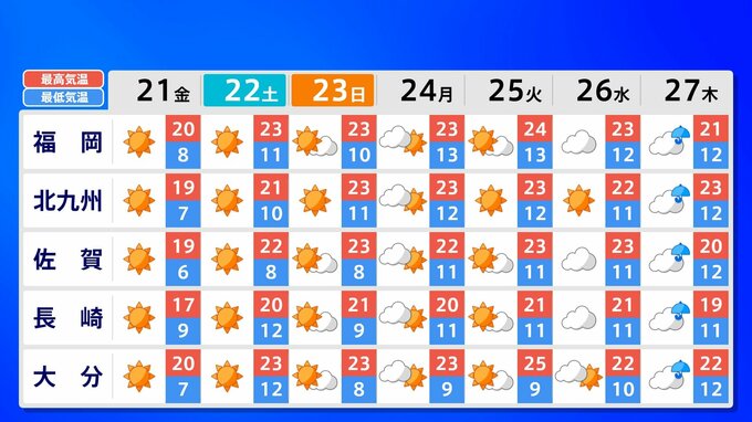 〈九州北部地方〉大分市の予想最高気温「25℃」は5月下旬並み