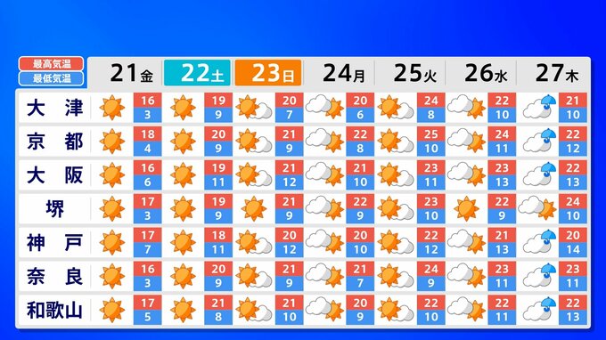 〈近畿地方〉京都市の予想最高気温「25℃」は5月中旬並み