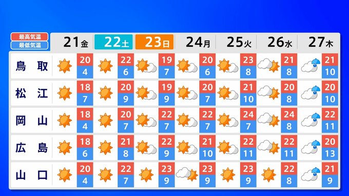 〈中国地方〉岡山市の予想最高気温「24℃」は5月上旬並み