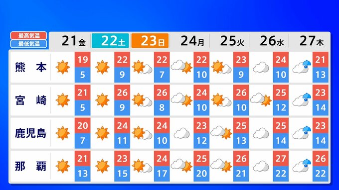 〈九州南部地方〉宮崎市の予想最高気温「26℃」は6月上旬並み