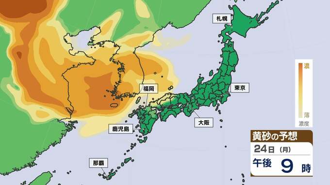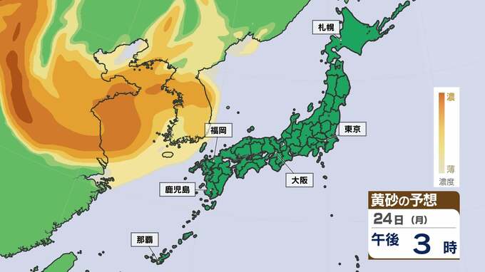 【東京も大阪も 濃い黄砂】接近中「黄砂に関する気象情報」発表【黄砂シミュレーション24日(月)~27日(木)】気象庁の予想詳しく 黄砂はいつどこで 2025年3月24日(月) 19:00 国内 天気 黄砂のシミュレーション24日(月)~27日(木) 濃い黄砂が予想されています、画像でご確認ください。