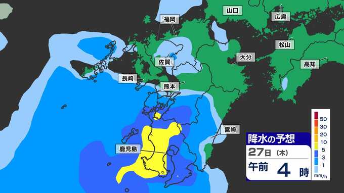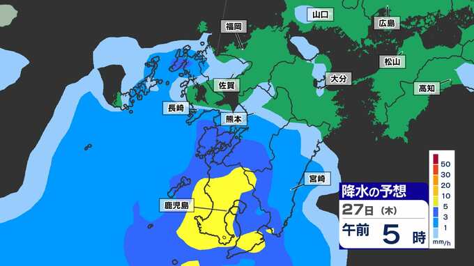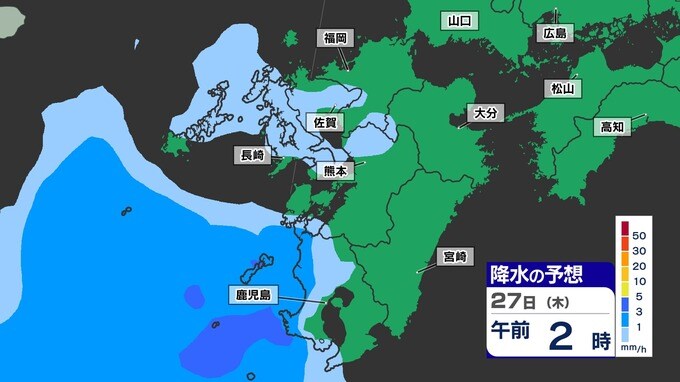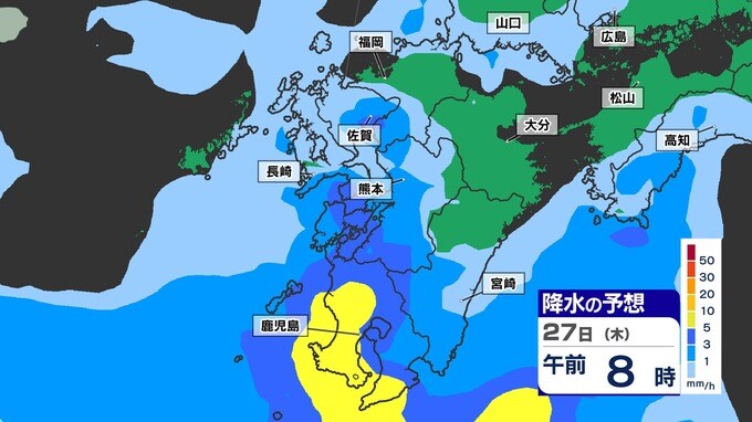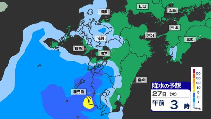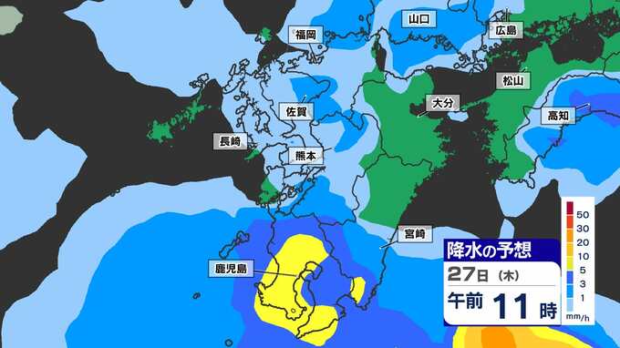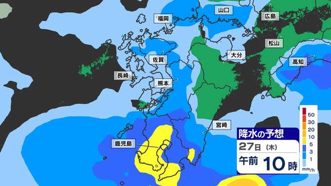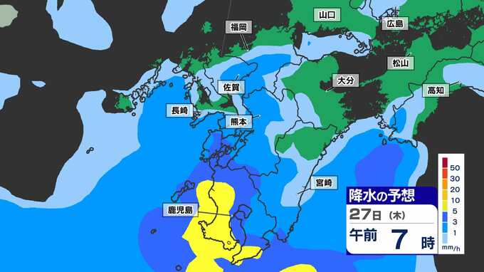 【九州 落雷や突風に関する気象情報】大気の状態が非常に不安定 雨のあと週末は寒の戻り《花冷え》【雨と発雷確率のシミュレーション27日(木)~28日(金)】福岡・佐賀・長崎・大分・熊本・宮崎・鹿児島 2025年3月26日(水) 19:00 国内 天気 【雨】のシミュレーション27日(木)~28日(金) 九州南部は〈27日未明〉、九州北部は〈27日朝〉から雨になりそうです。 画像で確認できます。