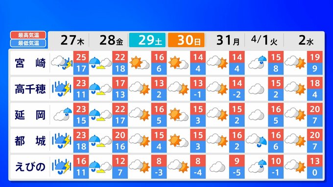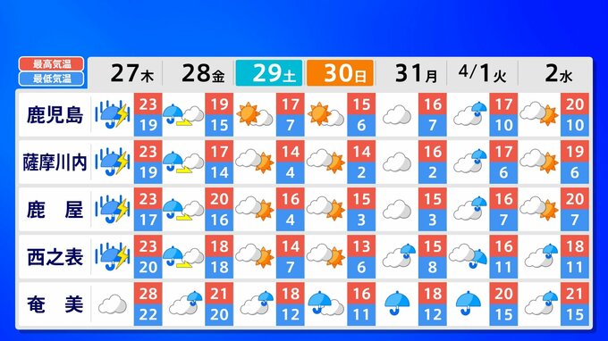 【九州 きょう雨】落雷と突風にも注意 黄砂を洗い流す雨 雨のあと寒の戻り〈花冷え〉【雨のシミュレーション27日(木)~28日(金)/ 週間予報】福岡・佐賀・長崎・大分・熊本・宮崎・鹿児島