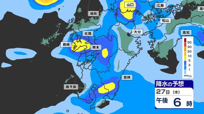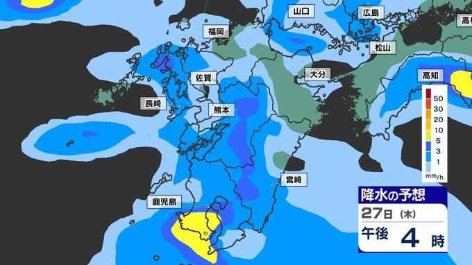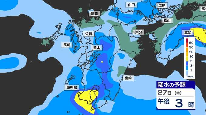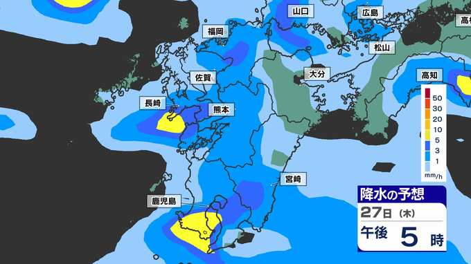 【九州 きょう雨】落雷と突風にも注意 黄砂を洗い流す雨 雨のあと寒の戻り〈花冷え〉【雨のシミュレーション27日(木)~28日(金)/ 週間予報】福岡・佐賀・長崎・大分・熊本・宮崎・鹿児島 2025年3月27日(木) 13:15 国内 天気 雨のシミュレーション27日(木)~28日(金) 大気の状態が不安定なため、シュミレーションよりも雨の降り方が強まる可能性があります。各県の予報文でも〈ところにより”激しく降る”〉となっています。シュミレーションは画像で確認できます。