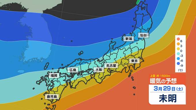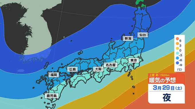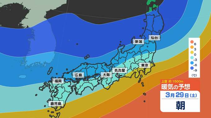 【東京 首都圏 まだ雪が降るのか?】29日(土)30日(日)冷たい雨 <寒の戻り”すぎ”>【雪はどこで?暖かくなるのはいつ?】雪のシミュレーション29日(土)~30日(日)/週間予報 2025年3月28日(金) 23:00 国内 天気 暖気と寒気のシミュレーション 上空約1500mの暖気と寒気シミュレーションを見ると、寒気南下中です。 寒気のピークは30日(日)で、4月1日(火)ごろになってようやく抜けていきます。画像で確認できます。