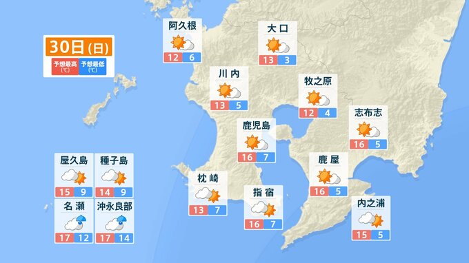 【お花見情報】甲突川河畔のサクラ開花状況【吉野公園、丸岡公園、寺山いこいの広場、吾平山陵、忠元公園、霧島神話の里も】土日の天気予報 鹿児島 2025年3月29日(土) 00:44 国内 天気 土日の天気は? 29日(土)は〈くもり〉、30日(日)は〈晴れときどきくもり〉です。 花冷えで寒いので、寒さ対策を忘れずに行いましょう。