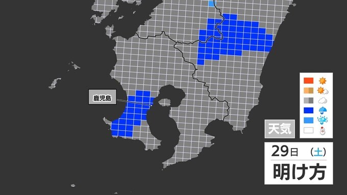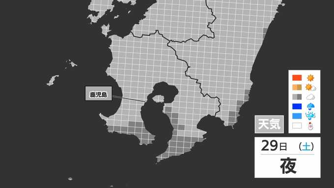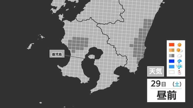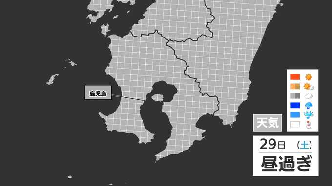 【お花見情報】甲突川河畔のサクラ開花状況【吉野公園、丸岡公園、寺山いこいの広場、吾平山陵、忠元公園、霧島神話の里も】土日の天気予報 鹿児島 2025年3月29日(土) 00:44 国内 天気 土日の天気をさらに詳しく 29日(土)30日(日)のメッシュ予報です、日曜日の方が晴れる予想です。画像で掲載しています。 「オレンジ」は「晴れ」、「グレー」は「くもり」、「青」は「雨」、「白」は「雪」の予想