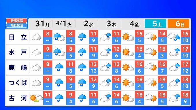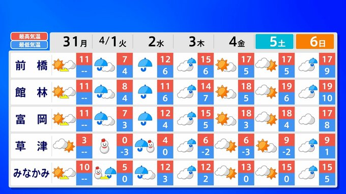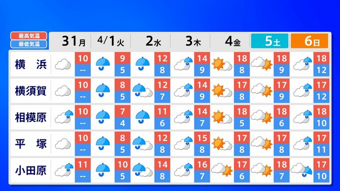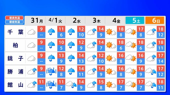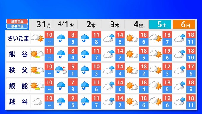 【東京 首都圏 関東甲信 なごり雪】あす 都心は冷たい雨か雪 内陸部は雪になりそう 新年度スタートは10℃に届かず〈”春”というより”冬”〉【雪はいつ?どこで降る?】雨と雪のシミュレーション31日(月)~4月3日(木)/ 週間予報 2025年3月31日(月) 14:00 国内 天気 週間予報(東京・神奈川・埼玉・千葉・茨城・栃木・群馬) あす4月1日(火)の予想最高気温は〈東京9℃〉〈横浜9℃〉〈さいたま8℃〉など、厳しい寒さになりそうです。真冬の装いで出かけましょう。週間予報は都・県ごとに画像で確認できます。