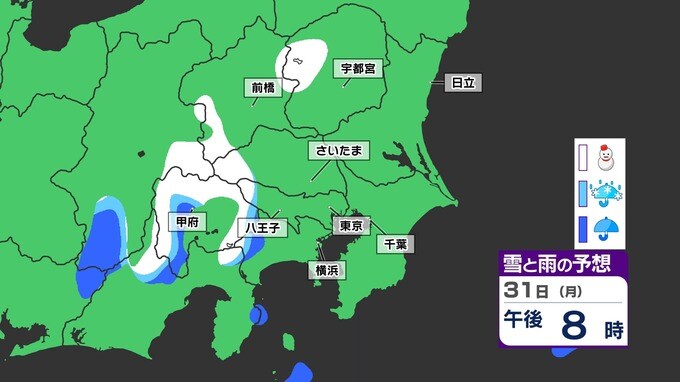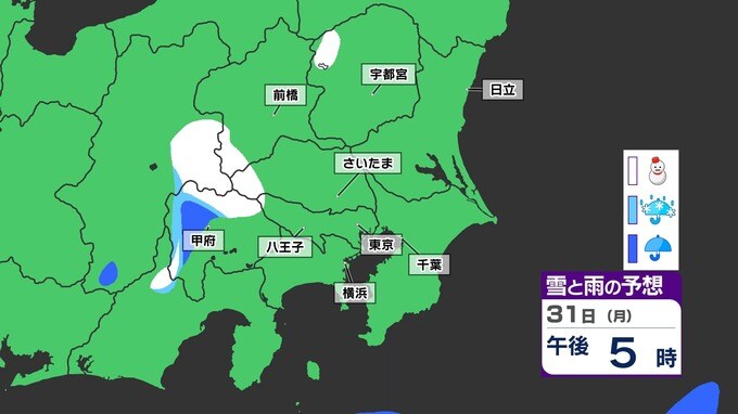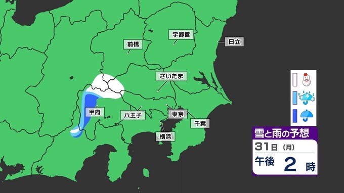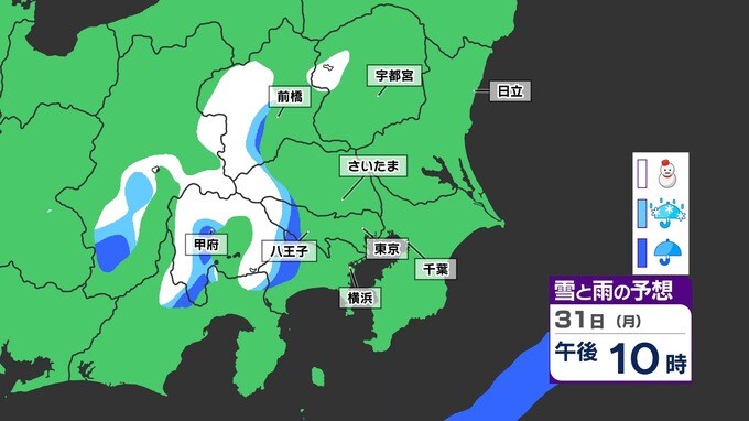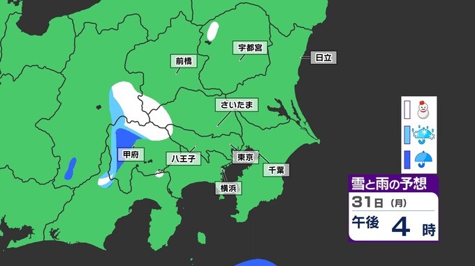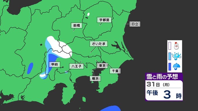 【東京 首都圏 関東甲信 なごり雪】あす 都心は冷たい雨か雪 内陸部は雪になりそう 新年度スタートは10℃に届かず〈”春”というより”冬”〉【雪はいつ?どこで降る?】雨と雪のシミュレーション31日(月)~4月3日(木)/ 週間予報 2025年3月31日(月) 14:00 国内 天気 雨と雪のシミュレーション31日(月)~4月3日(木) 内陸の山沿いでは〈雪〉に、気になる都心部ですが〈冷たい雨〉中心で気温しだいでは〈雪〉に変わるでしょう。画像で確認できます。 『白』=『雪』/『水色』=『みぞれ(雨と雪が混ざったもの)』/『青』=『雨』の予想