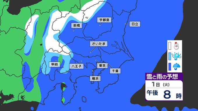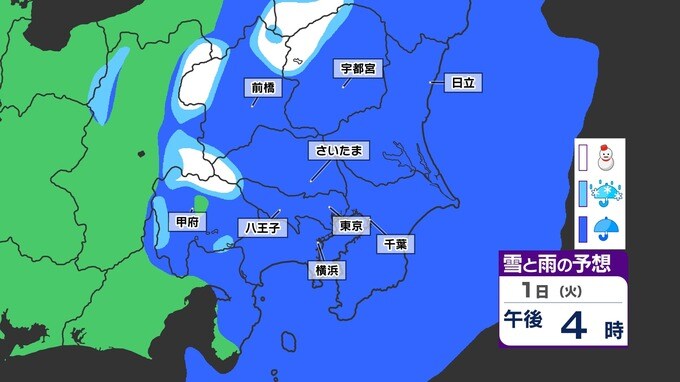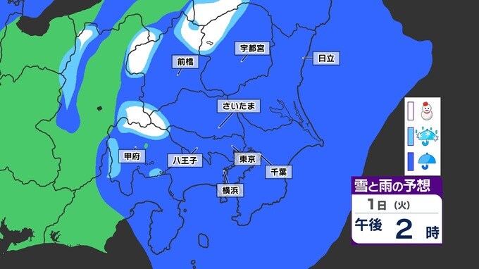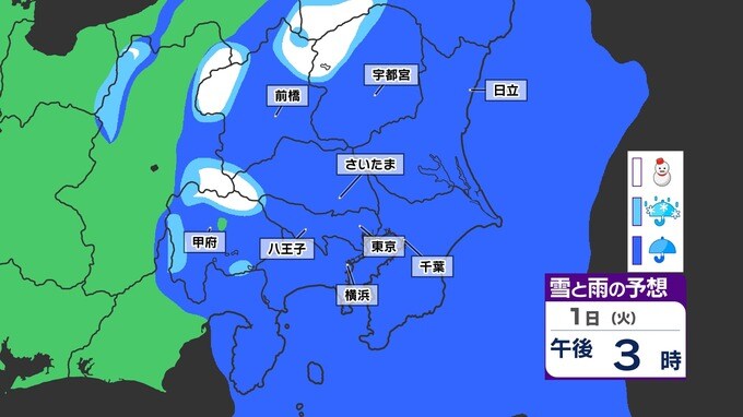【東京 首都圏 関東甲信 なごり雪】あす 都心は冷たい雨か雪 内陸部は雪になりそう 新年度スタートは10℃に届かず〈”春”というより”冬”〉【雪はいつ?どこで降る?】雨と雪のシミュレーション31日(月)~4月3日(木)/ 週間予報 2025年3月31日(月) 14:00 国内 天気 『白』=『雪』/『水色』=『みぞれ(雨と雪が混ざったもの)』/『青』=『雨』の予想