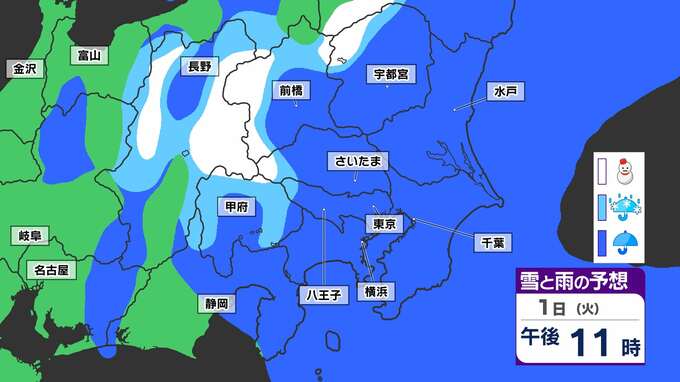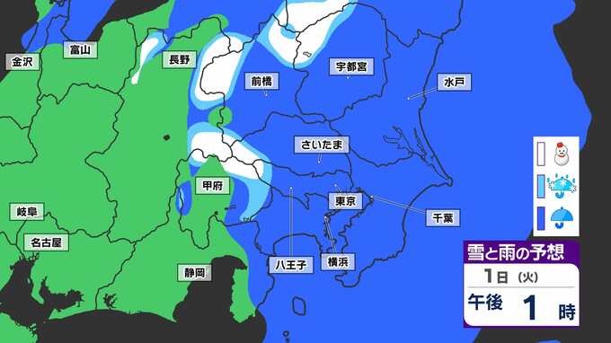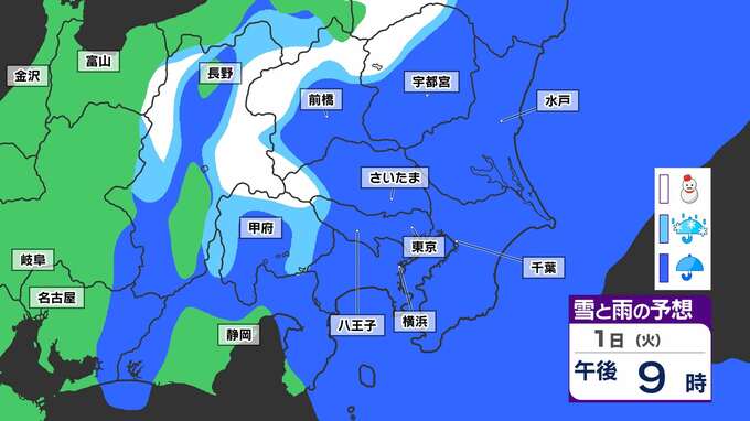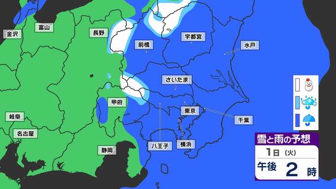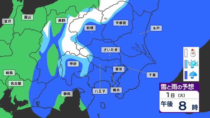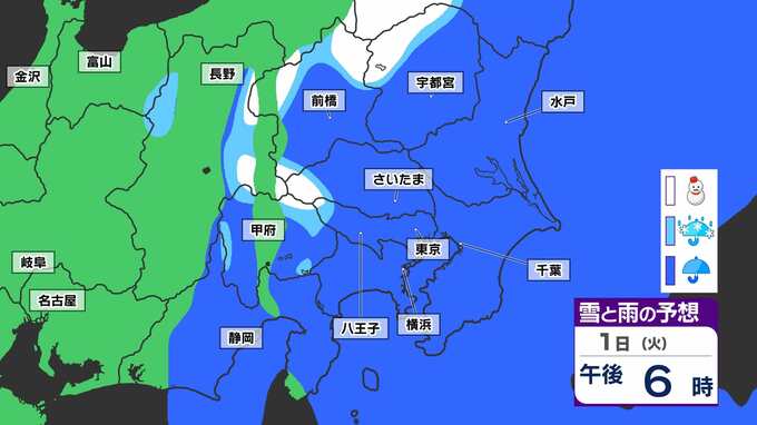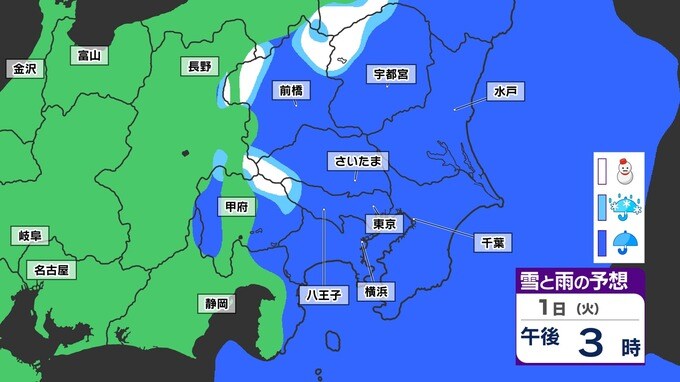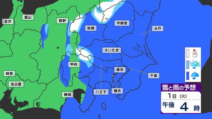 3. 【大雪情報】東京都心は冷たい雨 内陸部は積雪のおそれ 本当に4月なの? 凍える寒さ〈”春”というより”真冬”〉【雪はいつ?どこで降る?】雨と雪のシミュレーション4月1日(火)~4月3日(木)/ 週間予報