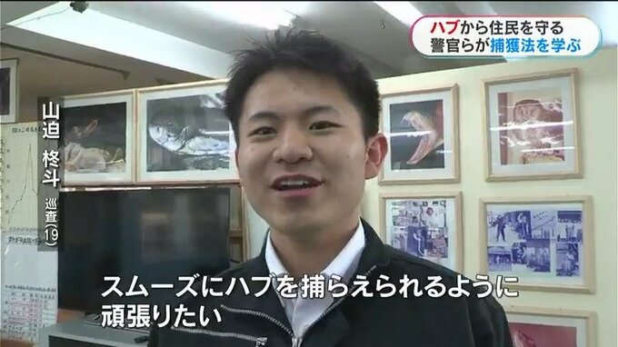 (山迫柊斗巡査)「住民を守ることを一番に考えて、スムーズにハブを捕らえられるように頑張っていきたい」