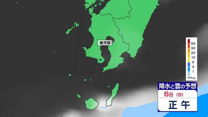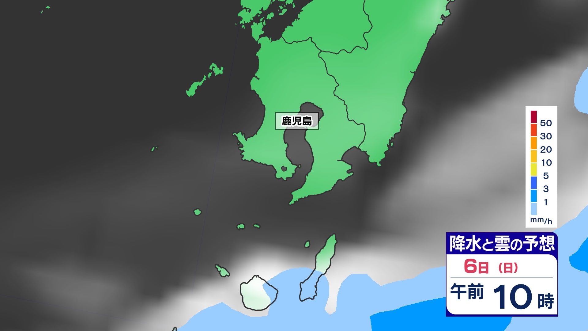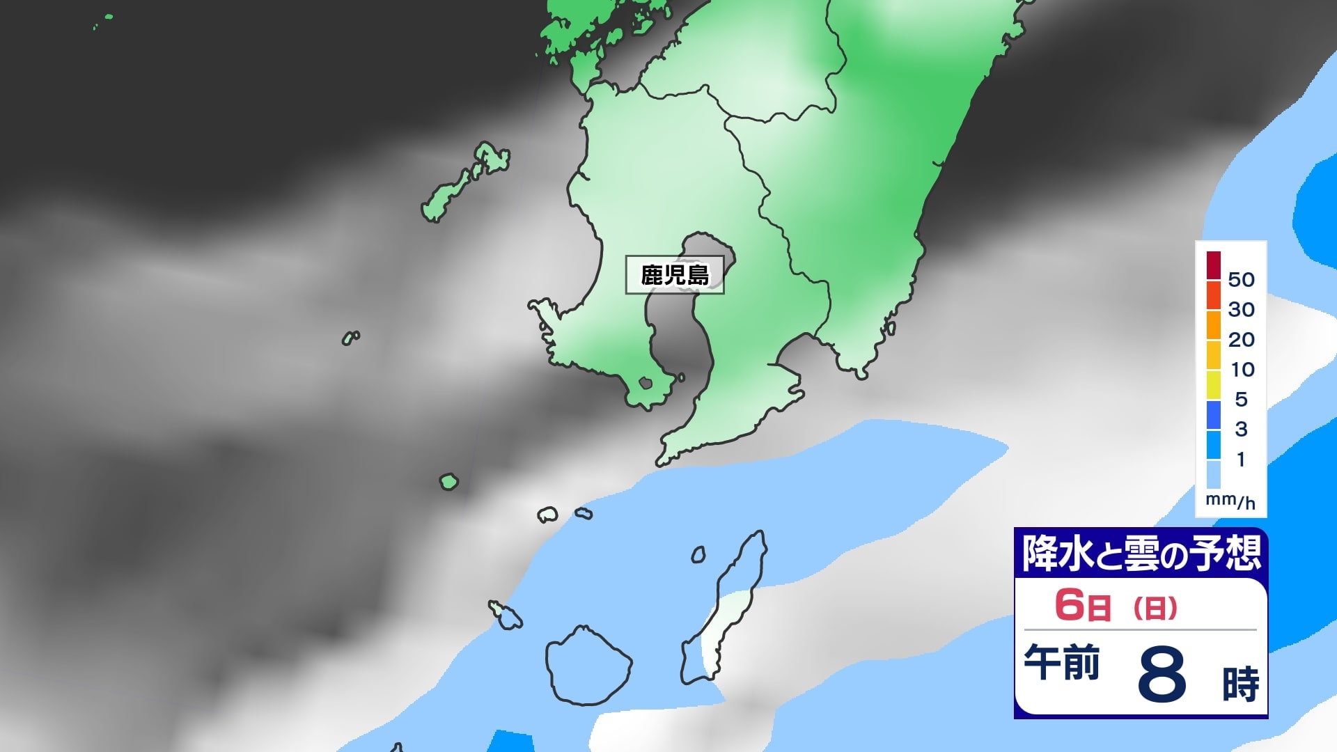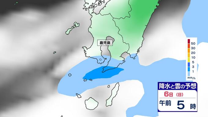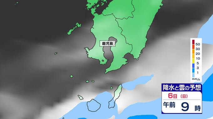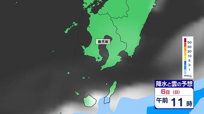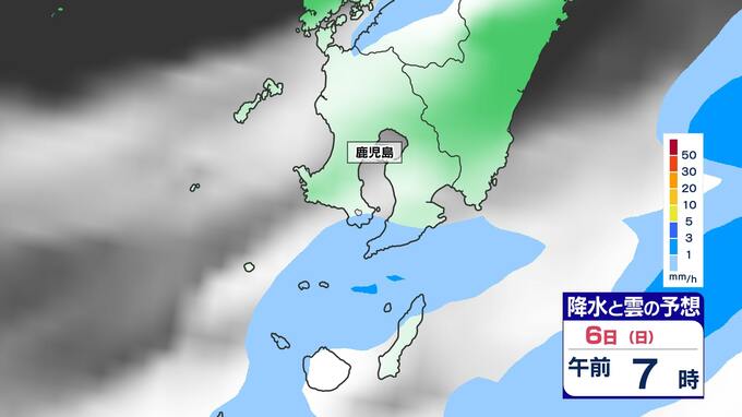 【お花見情報 土曜夜 にわか雨注意】どこよりも詳しい甲突川河畔のサクラ情報【忠元公園、観音ヶ池市民の森、魚見岳などの情報も】雨のシミュレーション【雨はいつから?どこで?】土日の天気予報 鹿児島 2025年4月4日(金) 21:00 国内 天気 白が〈雲〉、水色や青が〈雨〉の予想