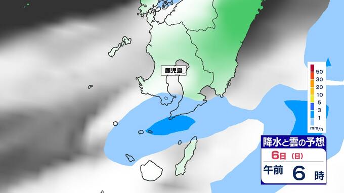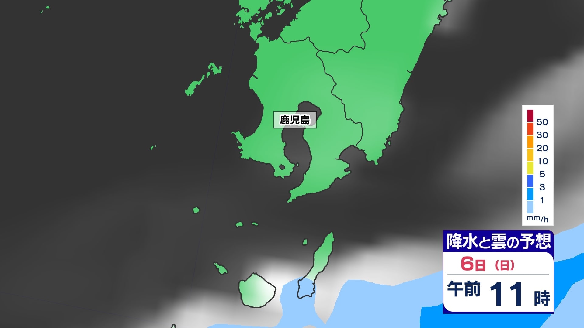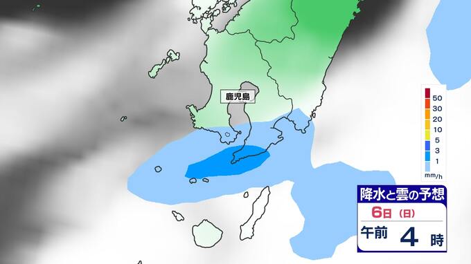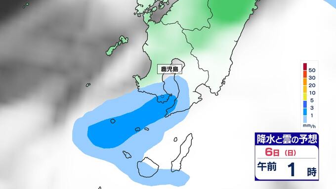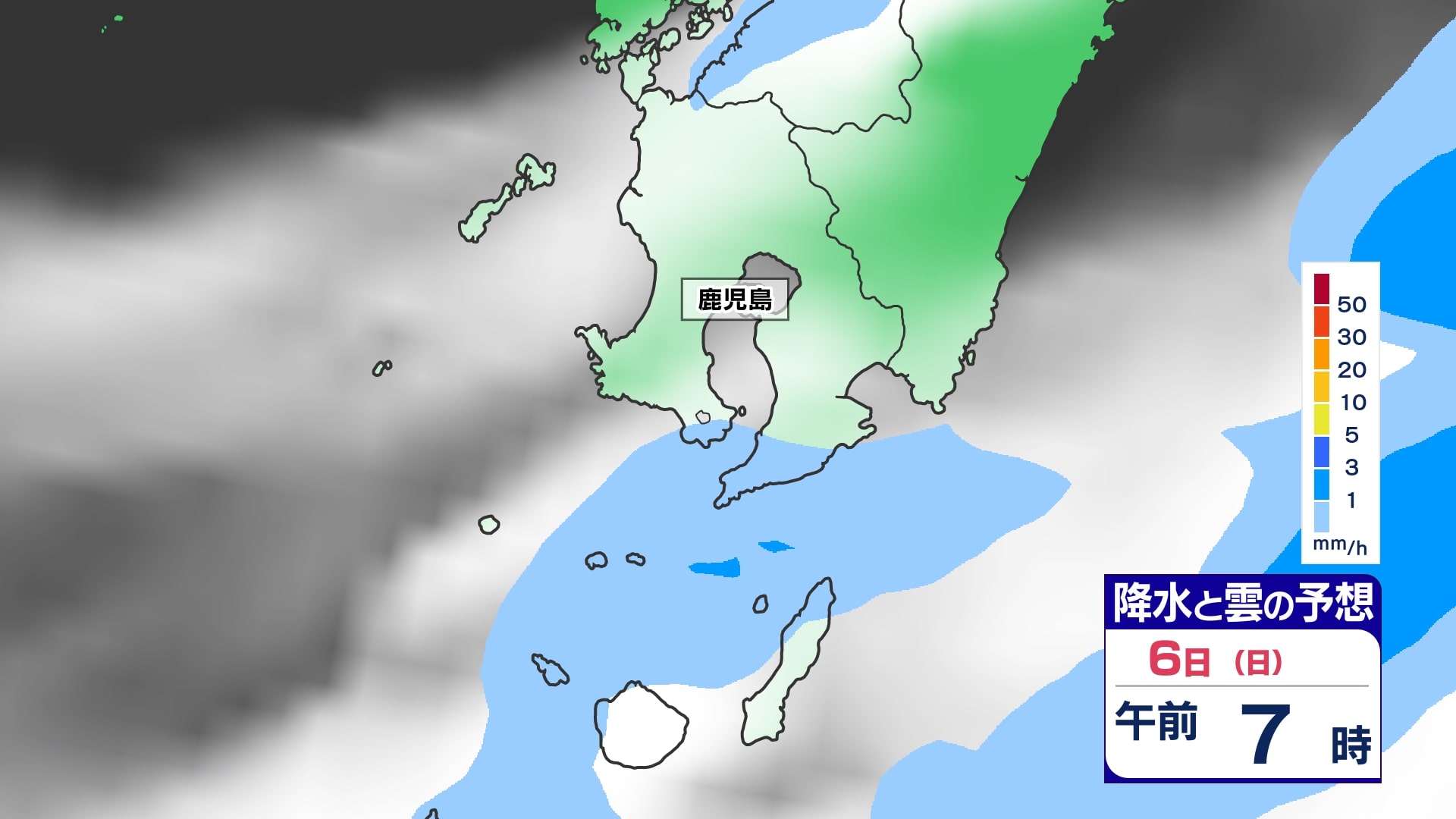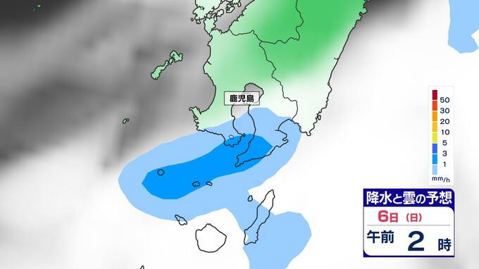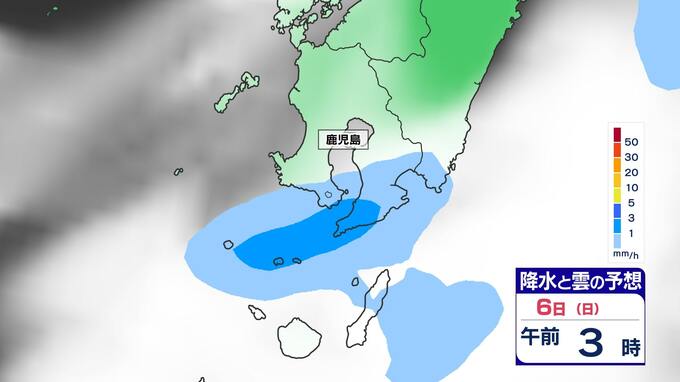 【お花見情報 土曜夜 にわか雨注意】どこよりも詳しい甲突川河畔のサクラ情報【忠元公園、観音ヶ池市民の森、魚見岳などの情報も】雨のシミュレーション【雨はいつから?どこで?】土日の天気予報 鹿児島 2025年4月4日(金) 21:00 国内 天気 白が〈雲〉、水色や青が〈雨〉の予想