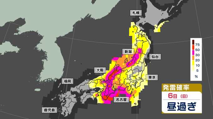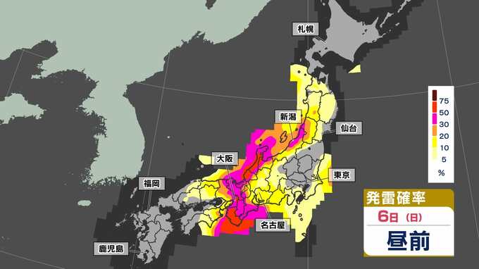 【落雷 突風 急な強い雨 に注意】寒気流入 大気の状態が非常に不安定 気象庁発表【雷・雨のシミュレーション5日(土)~6日(日)】花見など屋外では 天気の急変 突然の雨に要注意