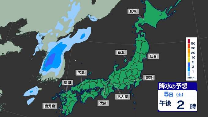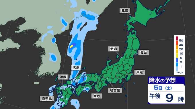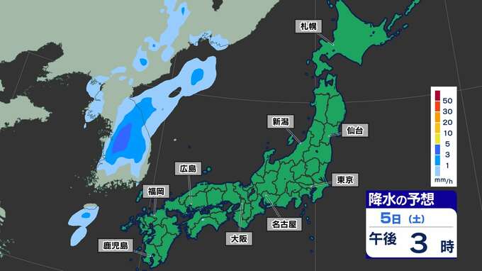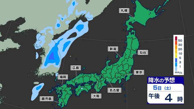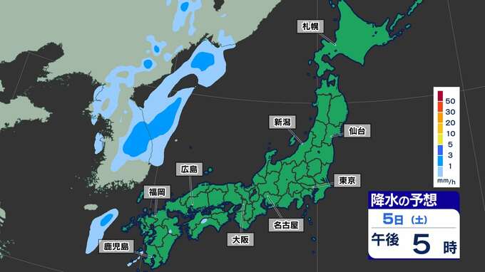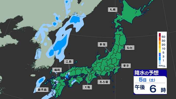 【落雷 突風 急な強い雨 に注意】寒気流入 大気の状態が非常に不安定 気象庁発表【雷・雨のシミュレーション5日(土)~6日(日)】花見など屋外では 天気の急変 突然の雨に要注意 2025年4月5日(土) 13:20 国内 天気 【雨】のシミュレーション5日(土)~6日(日) 5日(土)夜は、九州・中国・四国で雨、6日(日)には大阪で未明、東京は昼すぎから雨になりそうです。画像で確認できます。