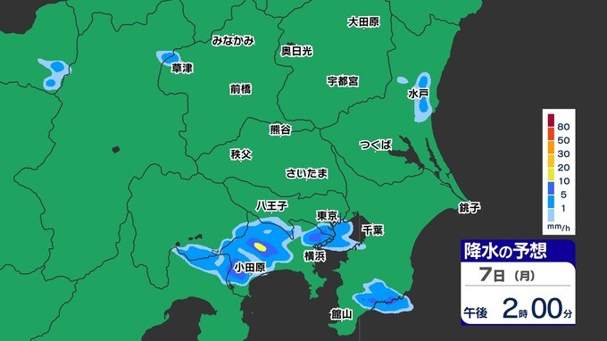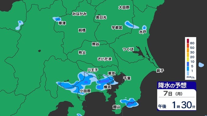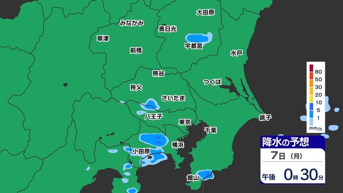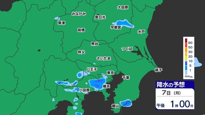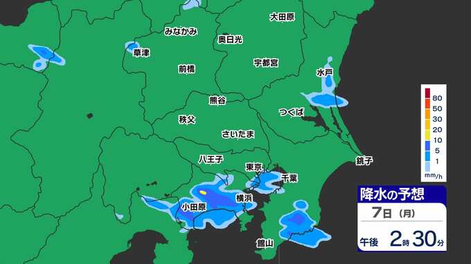 東京首都圏【局地的な激しい雨 落雷 突風 ひょうに注意】大気の状態が非常に不安定 気象庁発表 気象情報を詳しく【発生確率 雨 寒気のシミュレーション7日(月)昼前~夜遅く】 2025年4月7日(月) 16:30 国内 天気 【雨】のシミュレーション 雨雲の発生予想としては少ないですが、局地的に雨雲が発生する可能性があります。画像で確認できます。