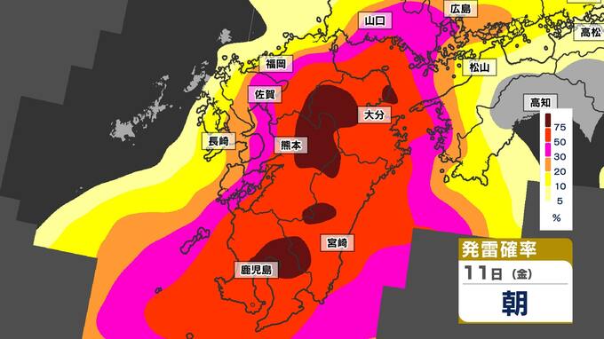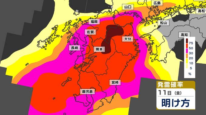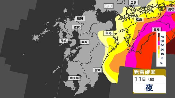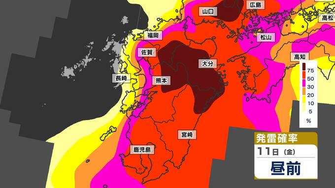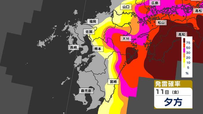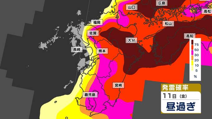 【花散らしの雨】九州 天気下り坂 あす明け方から雨 雷が鳴るところも【雨はいつからいつまで?】雨・発雷確率のシミュレーション10日(木)福岡・佐賀・長崎・大分・熊本・宮崎・鹿児島 2025年4月9日(水) 18:00 国内 天気