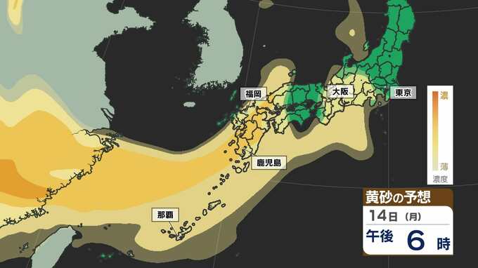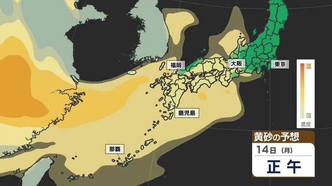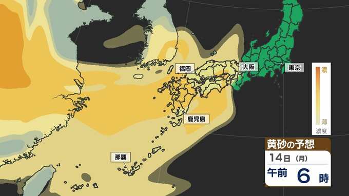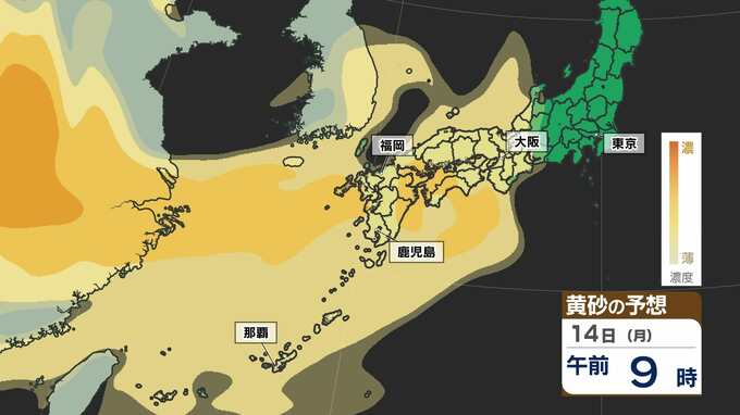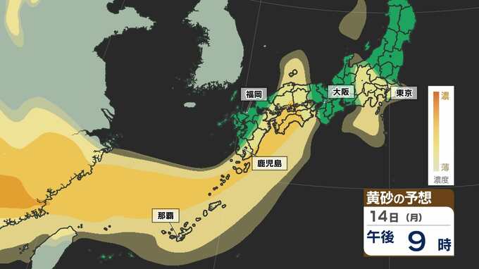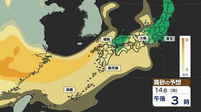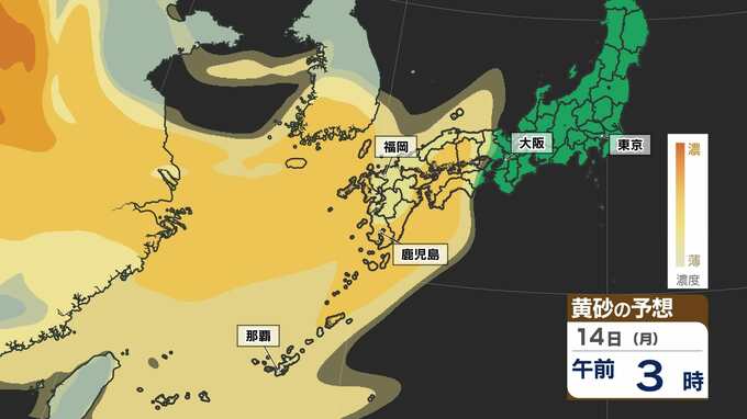 【黄砂接近 大阪 福岡 鹿児島】「黄砂に関する気象情報」気象庁発表 【黄砂シミュレーション13日(日)~15日(火)】黄砂いつ どこで 濃さは?