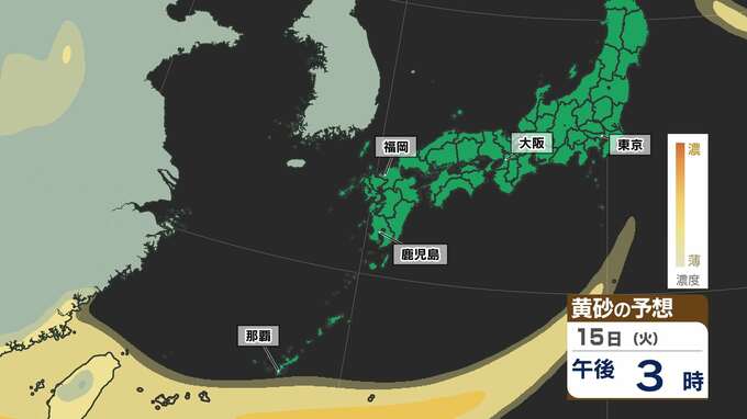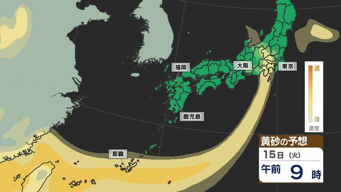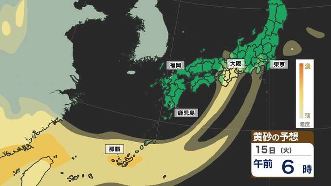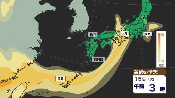 【黄砂接近 大阪 福岡 鹿児島】「黄砂に関する気象情報」気象庁発表 【黄砂シミュレーション13日(日)~15日(火)】黄砂いつ どこで 濃さは?