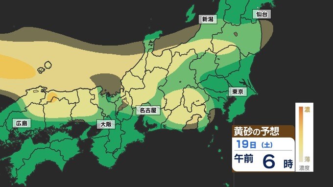 【東京 黄砂来るのか】大阪・名古屋・東京 飛来予想【黄砂シミュレーション18日(金)~20日(日)】黄砂いつどこで・濃さは