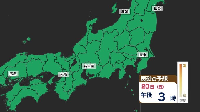 【東京 黄砂来るのか】大阪・名古屋・東京 飛来予想【黄砂シミュレーション18日(金)~20日(日)】黄砂いつどこで・濃さは
