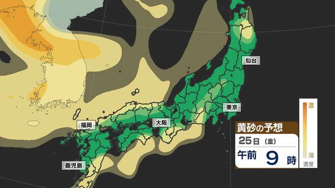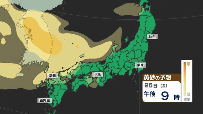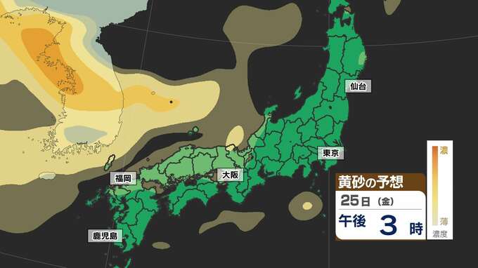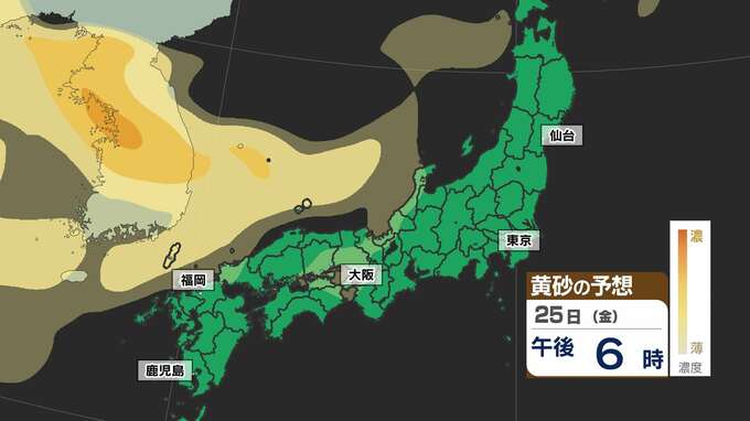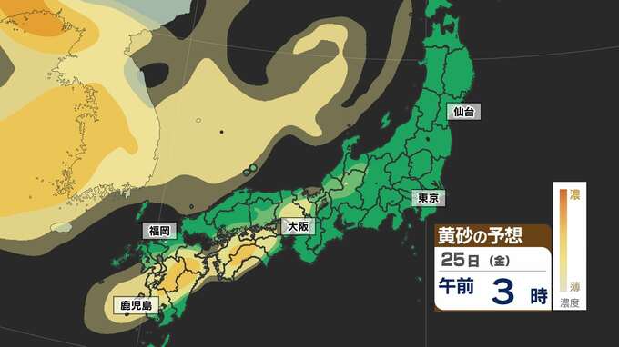 【きょう夜 黄砂飛来か?】福岡には今夜 大阪にも黄砂の予想 黄砂のシミュレーション24日(木)~26日(土)【黄砂は日本のどこに来るのか】