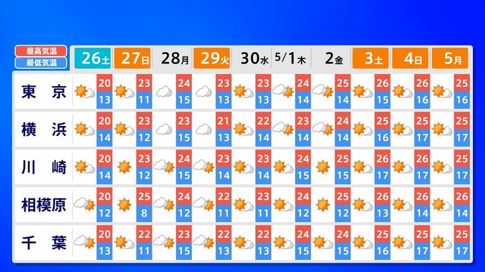 【ゴールデンウィーク2025天気予報】晴れ多いが雨の日も 東京 大阪 名古屋 福岡 GW後半かなりの高温 最大11連休【全国54地点GW天気 / 雨はいつ どこで】雨のシミュレーション28日(月)~29日(火祝) 2025年4月25日(金) 15:30 国内 天気