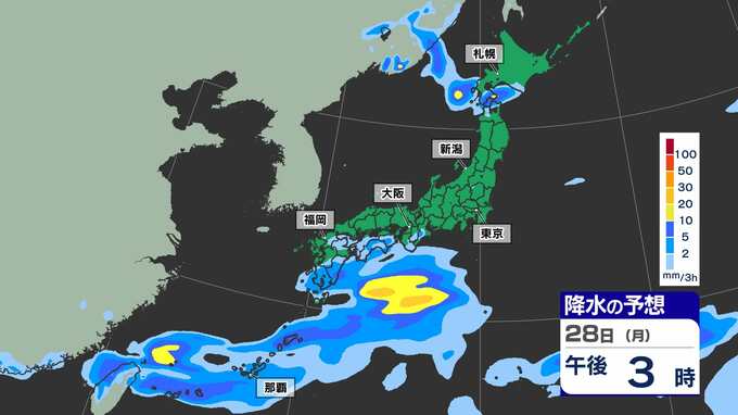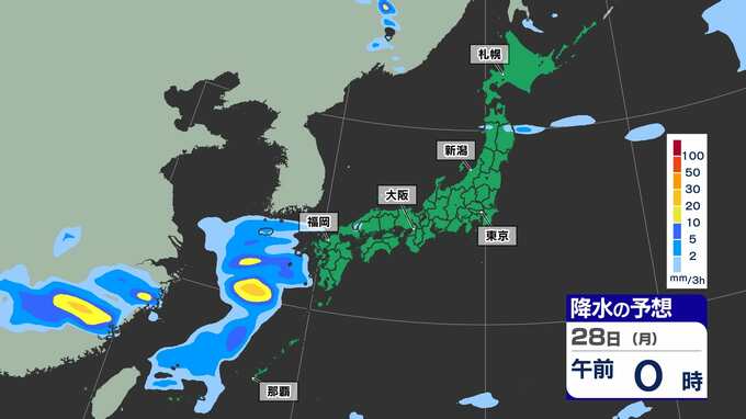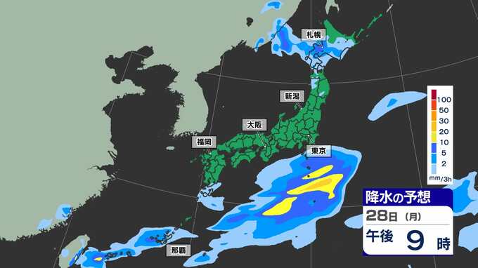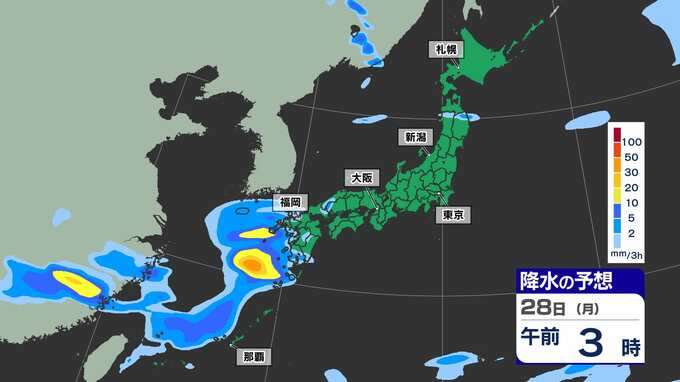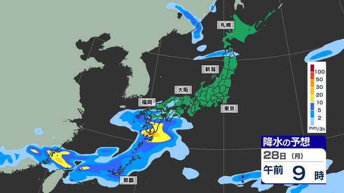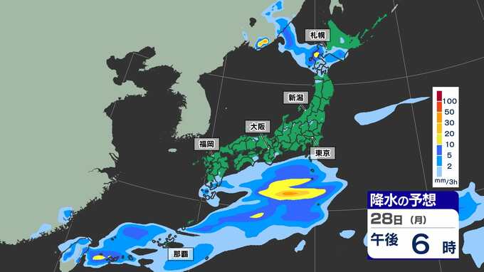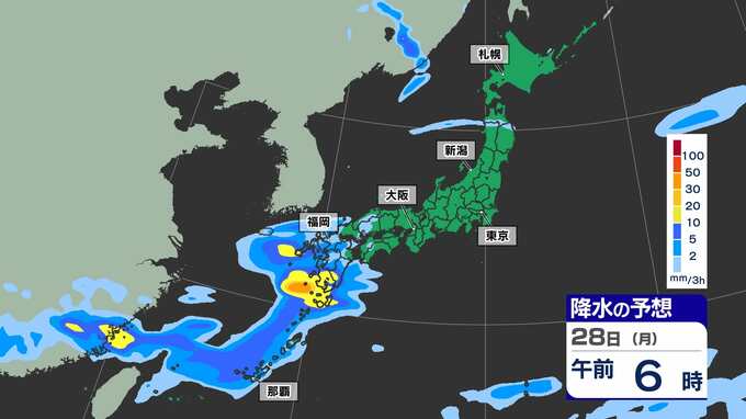 【ゴールデンウィーク2025天気予報】晴れ多いが雨の日も 東京 大阪 名古屋 福岡 GW後半かなりの高温 最大11連休【全国54地点GW天気 / 雨はいつ どこで】雨のシミュレーション28日(月)~29日(火祝) 2025年4月25日(金) 15:30 国内 天気 雨のシミュレーション28日(月)~29日(火祝) 28日(月)中国大陸から前線が九州南部に延びてきます。このあと前線上に〈低気圧〉が発生し、この〈低気圧〉は本州の南岸を東へ進む見込みです。雨のシミュレーションは画像で確認できます。