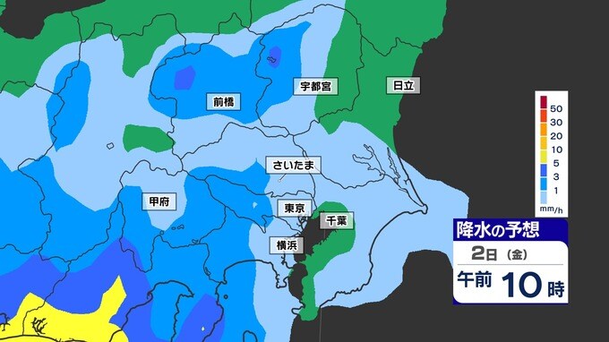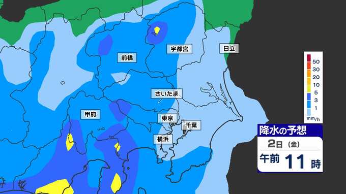【東京首都圏 あす低気圧通過】あす2日(金)本降りの時間帯も 雨はいつから【雨のシミュレーション5月2日(金)/連休後半 関東の天気】東京・横浜・埼玉・千葉・群馬・栃木・茨城〈あすは必ず傘を持って〉 2025年5月1日(木) 13:00 国内 天気 雨のシミュレーション2日(金) 西から雨雲が近づいてきます。早い所では朝から雨でしょう。 雨のシミュレーションは画像で確認できます。