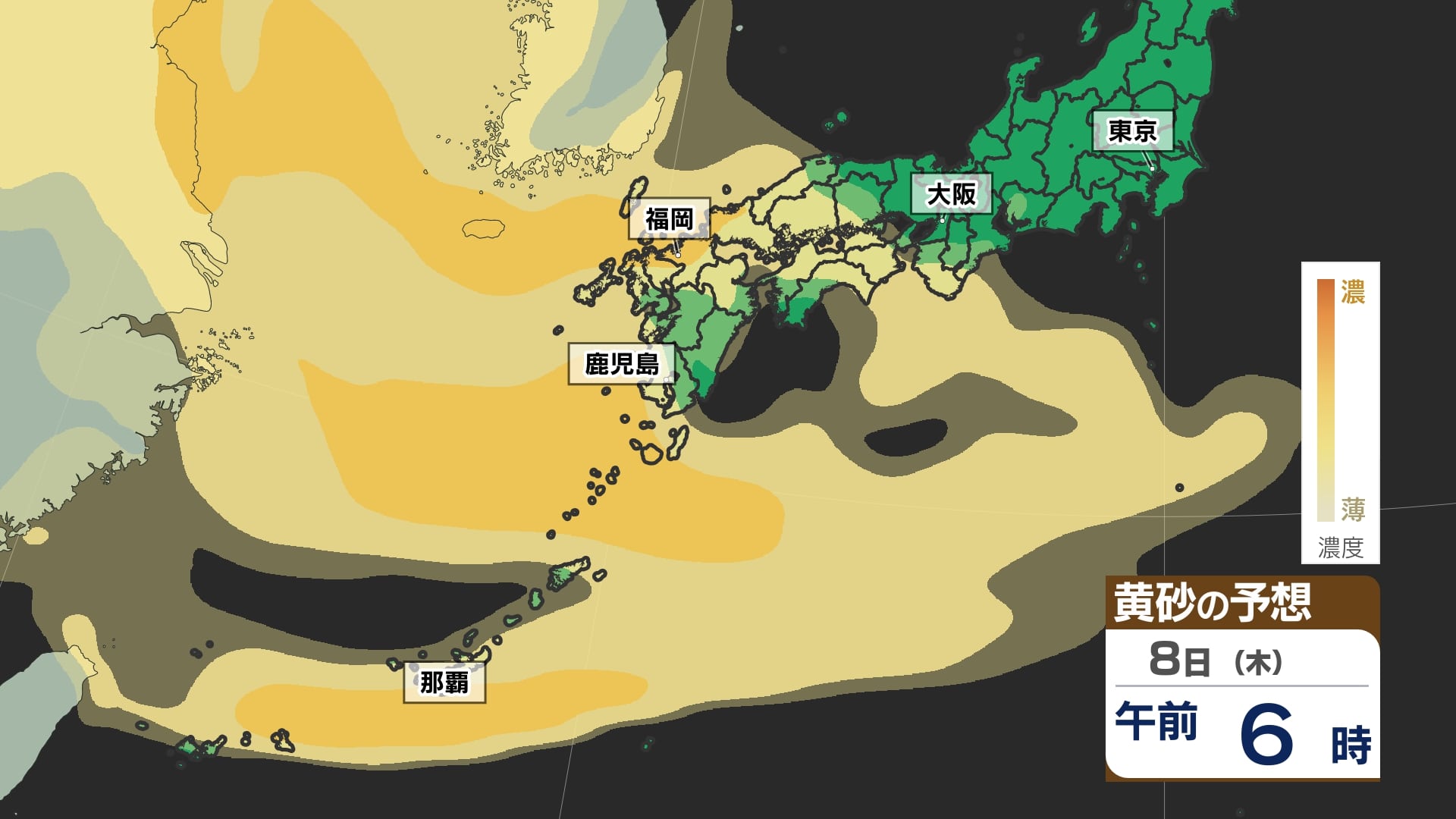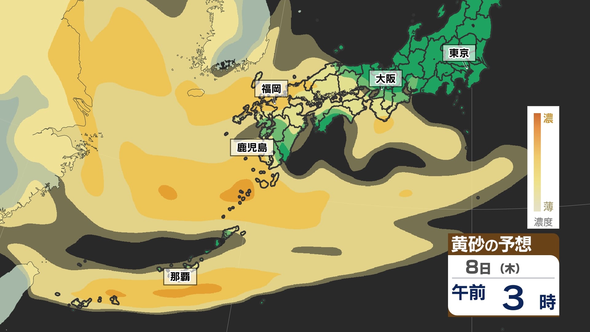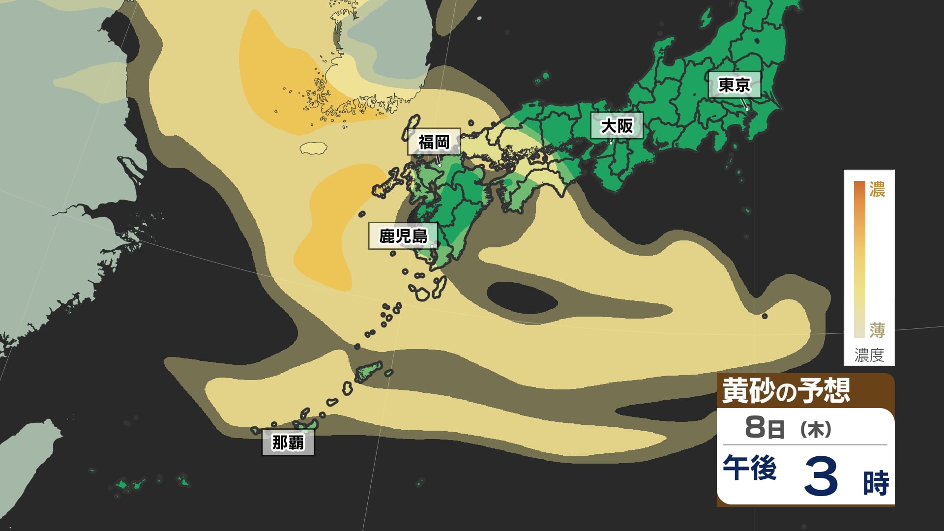 3. 【黄砂接近】連休明けは黄砂飛来か 九州・近畿・沖縄・中国・四国 雨のあと黄砂の予想 洗車・洗たく要注意【黄砂シミュレーション5月6日(火)~8日(木)】黄砂はどこで いつから? 気象庁発表詳しく