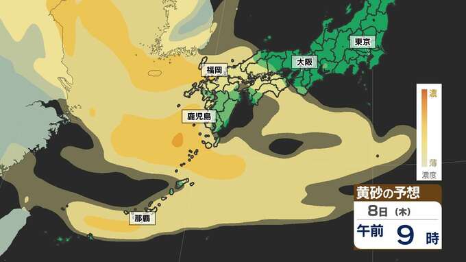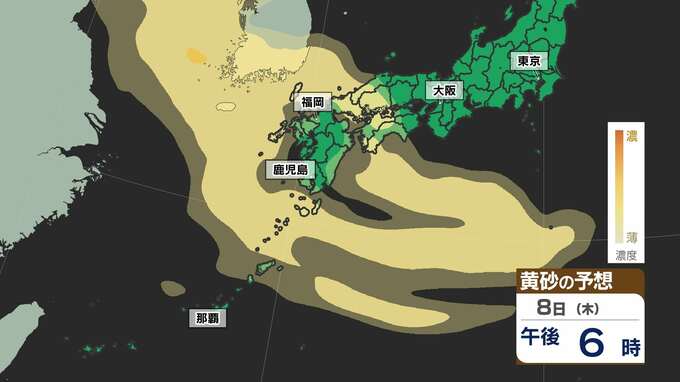 【黄砂接近】連休明けは黄砂飛来か 九州・近畿・沖縄・中国・四国 雨のあと黄砂の予想 洗車・洗たく要注意【黄砂シミュレーション5月6日(火)~8日(木)】黄砂はどこで いつから? 気象庁発表詳しく 2025年5月5日(月) 19:00 国内 天気