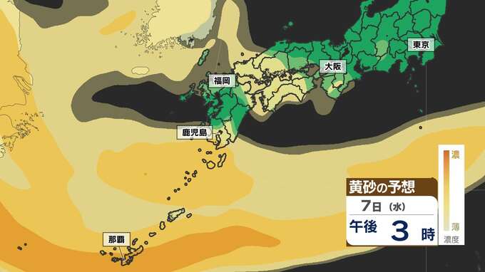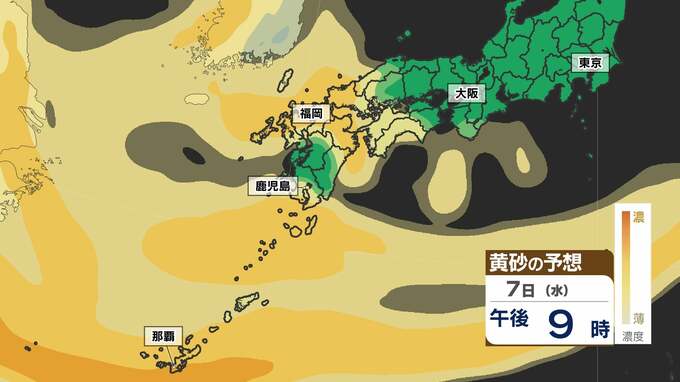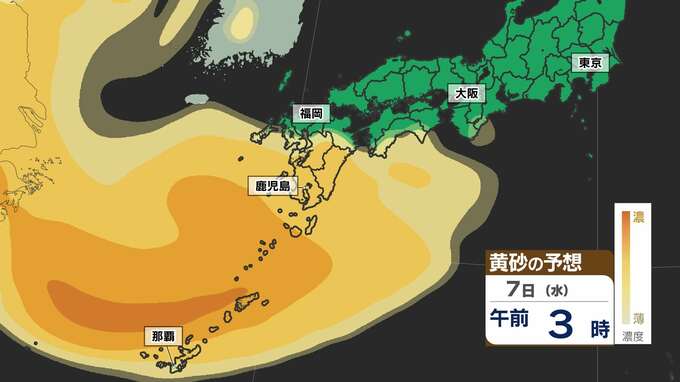 3. 【きょう夜 黄砂飛来か?】鹿児島 熊本 宮崎に黄砂に関する気象情報発表 交通機関に影響のおそれ 黄砂のシミュレーション6日(火)~9日(金)【黄砂は日本のどこに来るのか】気象台発表を詳しく