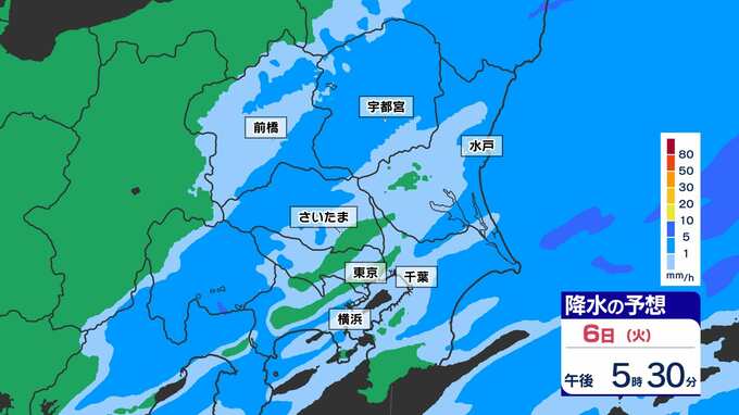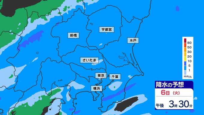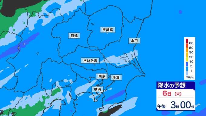 【東京首都圏 若葉寒】最高気温 東京14℃ 横浜15℃ さいたま15℃ きのうより10℃もダウン【雨のシミュレーション6日(火)~7日(水)/ 週間予報】あすには気温上昇 2025年5月6日(火) 13:35 国内 天気 雨のシミュレーション(30分ごと) 強く降るようなことはなく、シトシトと冷たい雨が続きそうです。夜にいったん雨が上がりますが、深夜に再び雨雲が予想されています。画像で確認できます。