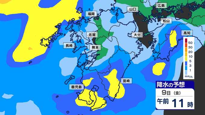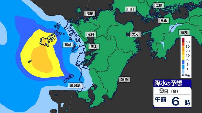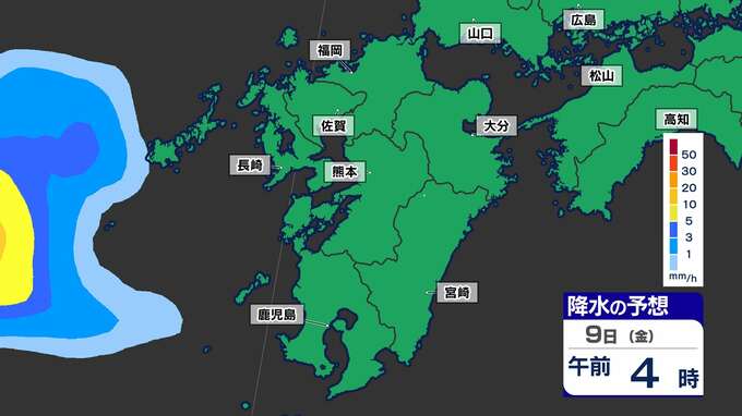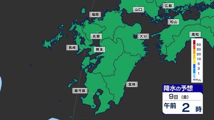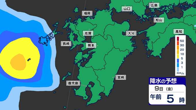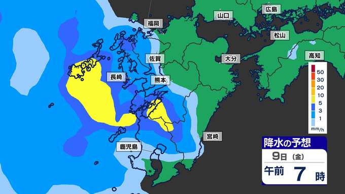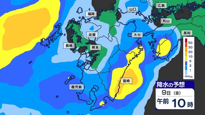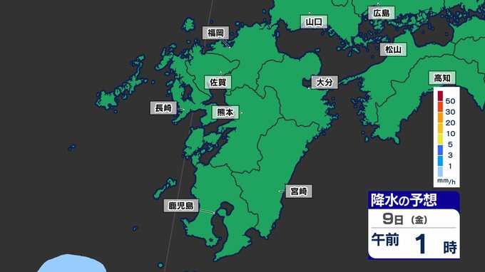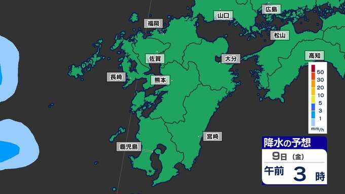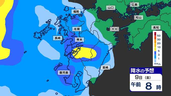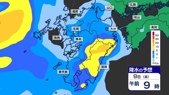 【警報級 暴風 大雨のおそれ】暴風と大雨に関する気象情報 発表【雨・風・発雷確率のシミュレーション9日(金)~10日(土)】福岡・佐賀・長崎・大分・熊本・宮崎・鹿児島 気象台発表詳しく 2025年5月8日(木) 19:00 国内 天気 雨のシミュレーション9日(金)~10日(土) 9日(金)朝から雨が降り出し、夜は活発な雨雲が予想されています。10日(土)朝までに雨は止む見込みです。1時間ごとの雨のシミュレーションは、画像で確認できます。