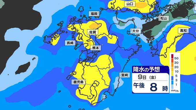【暴風と大雨に関する気象情報】福岡100ミリ 鹿児島200ミリ 警報級の暴風・大雨のおそれ【雨・風・暖湿流のシミュレーション9日(金)~10日(土)】福岡・佐賀・長崎・大分・熊本・宮崎・鹿児島 気象台発表詳しく