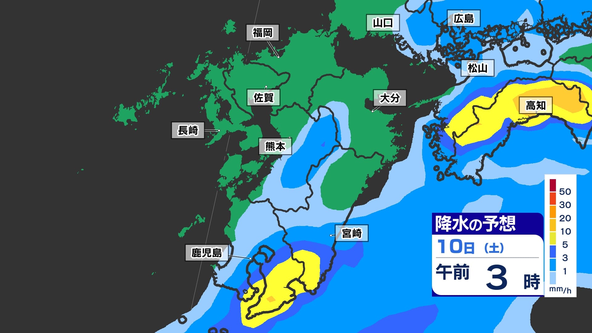 3. 【暴風と大雨に関する気象情報】福岡100ミリ 熊本120ミリ 鹿児島150ミリ 暴風警報発表 大雨警報の可能性もあり【雨・発雷確率のシミュレーション9日(金)~10日(土)/ 土日の天気】福岡・佐賀・長崎・大分・熊本・宮崎・鹿児島 気象台発表詳しく