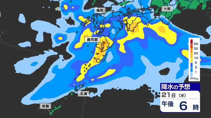 3. 【奄美地方 梅雨入り】奄美地方「警報級」大雨のおそれ 梅雨前線北上する21日(水)九州北部南部で大雨のおそれ【雨のシミュレーション19日(月)~22日(木)】福岡・佐賀・長崎・大分・熊本・宮崎・鹿児島